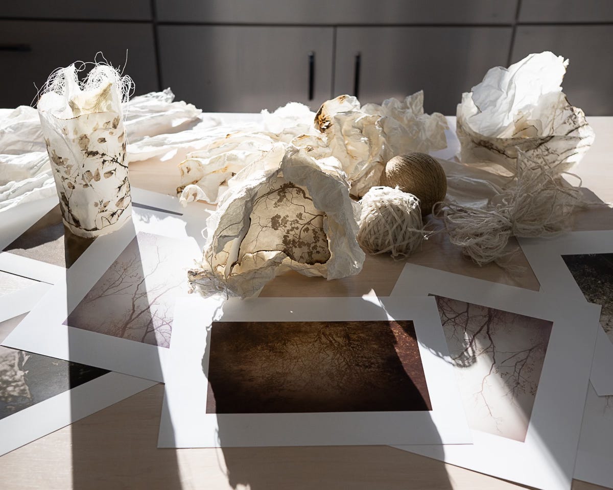 I am a photographer, papermaker, paper sculptor, and forest therapy guide. Through concept-based projects, I explore how our relationship with the natural world supports mental health and strengthens human connection. My passion lies in digging deep—uncovering both the scientific and the soulful layers of experience. I spend countless hours on the trails near my home and love sharing my relational forest-bathing practice with others. These multi-sensory encounters with nature become the foundation for my two- and three-dimensional works, intimate immersive landscapes that offer viewers a space for respite and recovery.